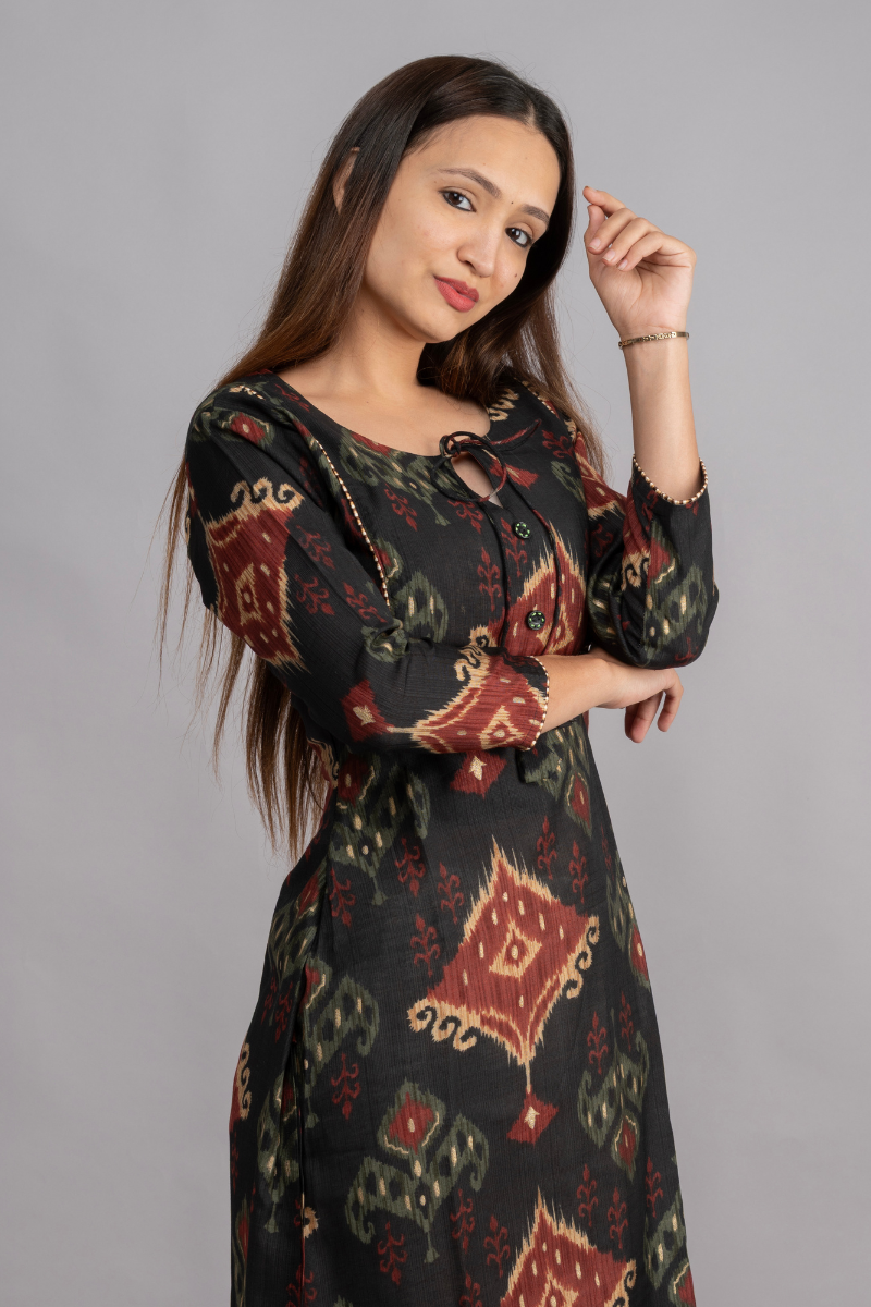 VERTICAN BLACK & MARUN PRINT WITH FOIL