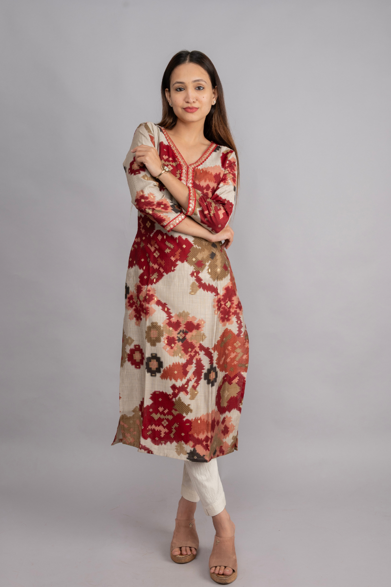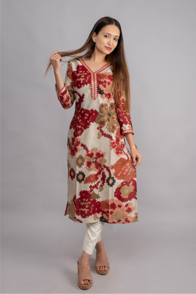 VERTICAN CREAM & MARUN PRINT WITH FOIL